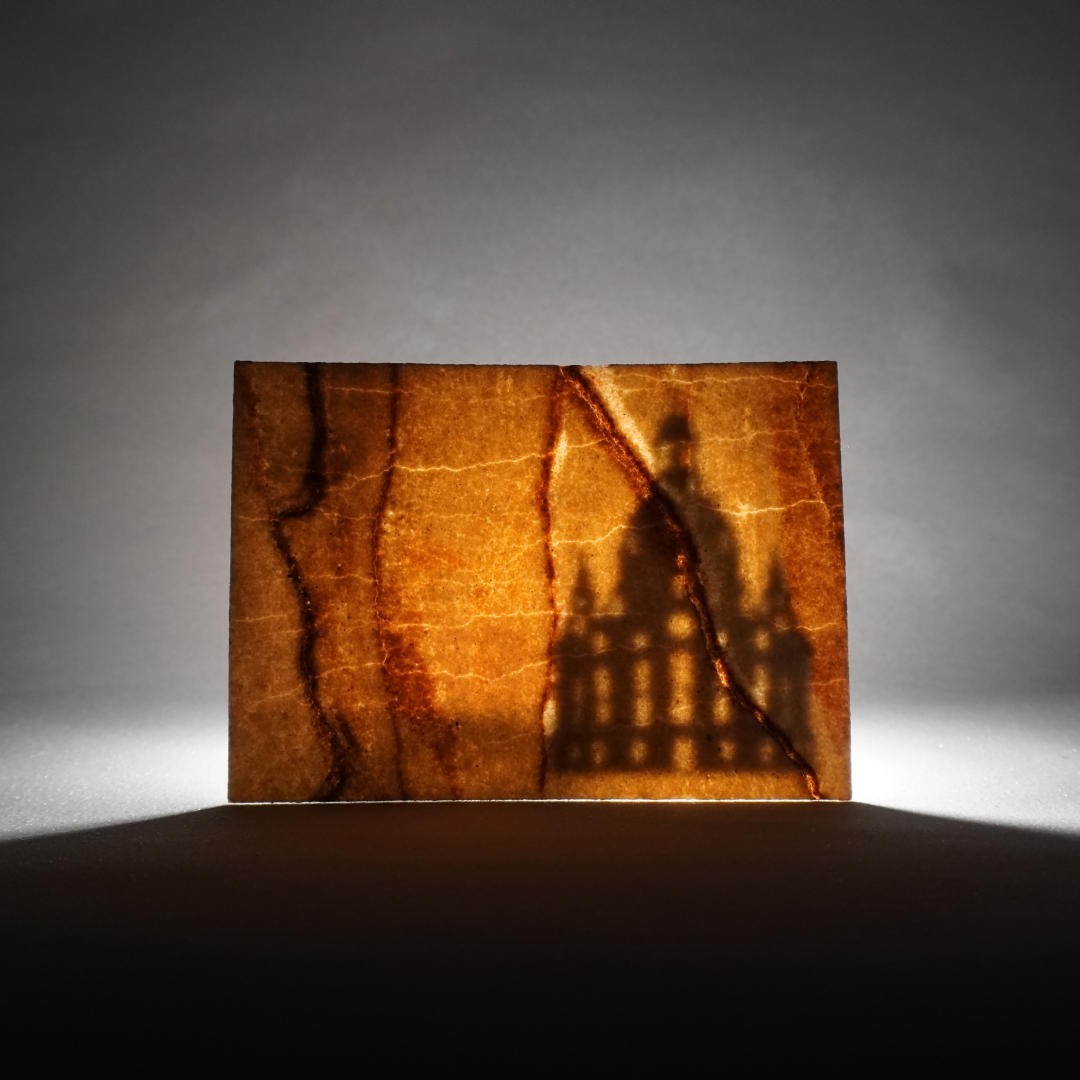Nehmen Sie sich ein Stück Sandstein in Form einer Postkarte mit nach Hause oder versenden Sie diese an Freunde und Familie. Die besondere Beschaffenheit und Haptik des Sandsteins in Verbindung mit dem transluzenten Lichtspiel ist einmalig. Die Rückseite der Postkarte lässt sich beschriften.